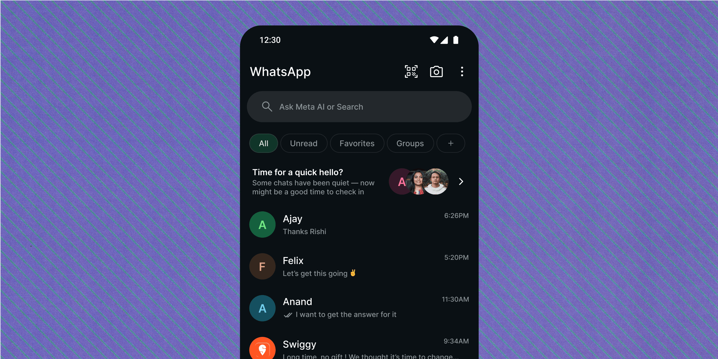 Some chats go silent for months — not because we forget people, but life just moves on. We could gently remind of the conversations that have been quiet for a while. Your privacy stays untouched. This is based only on activity, not content.