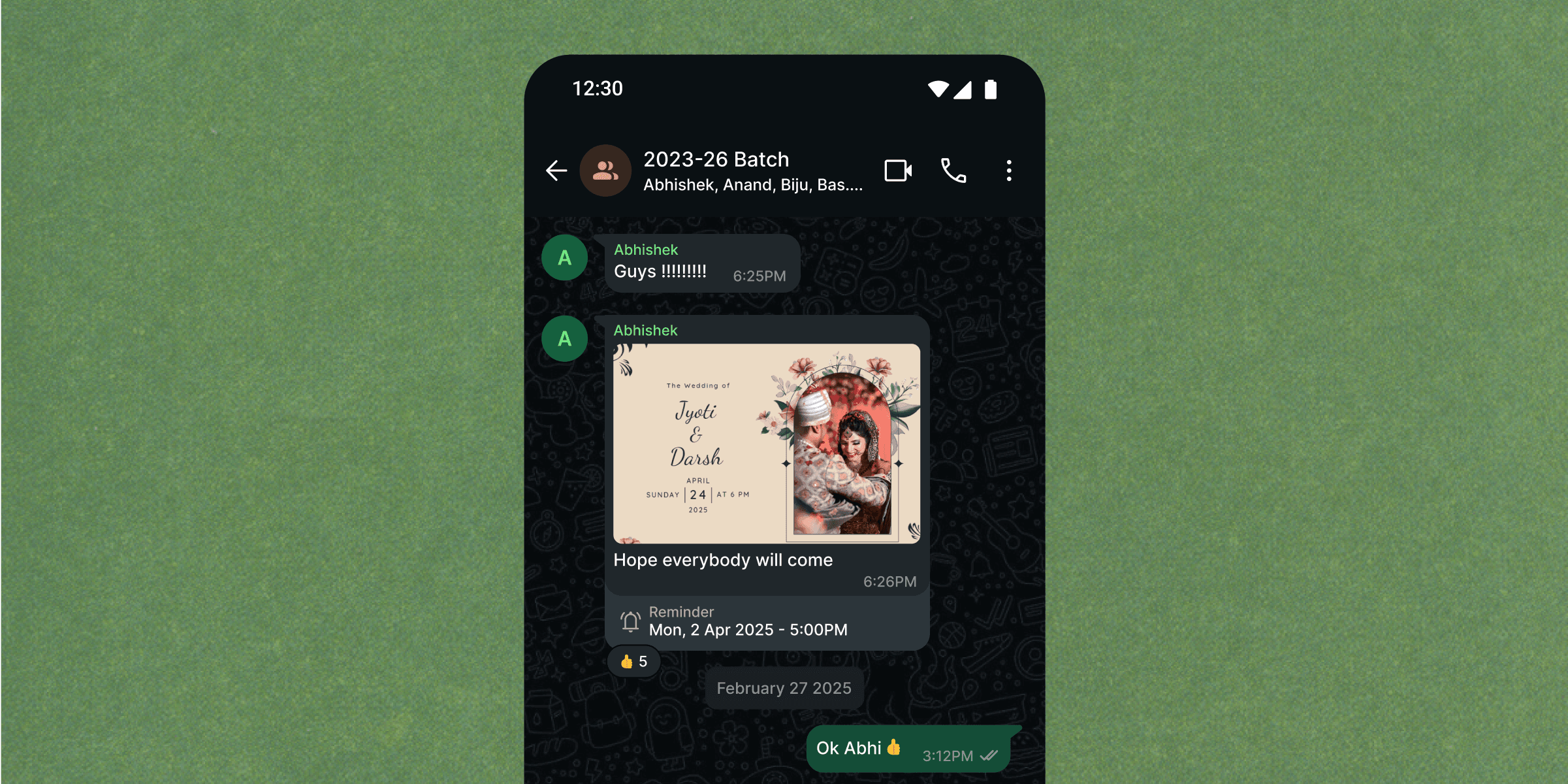 Group chats move fast — one minute it’s something important, the next it’s memes and weekend plans. What if we could set a small reminder on key messages, so that it will be notified again later ?
