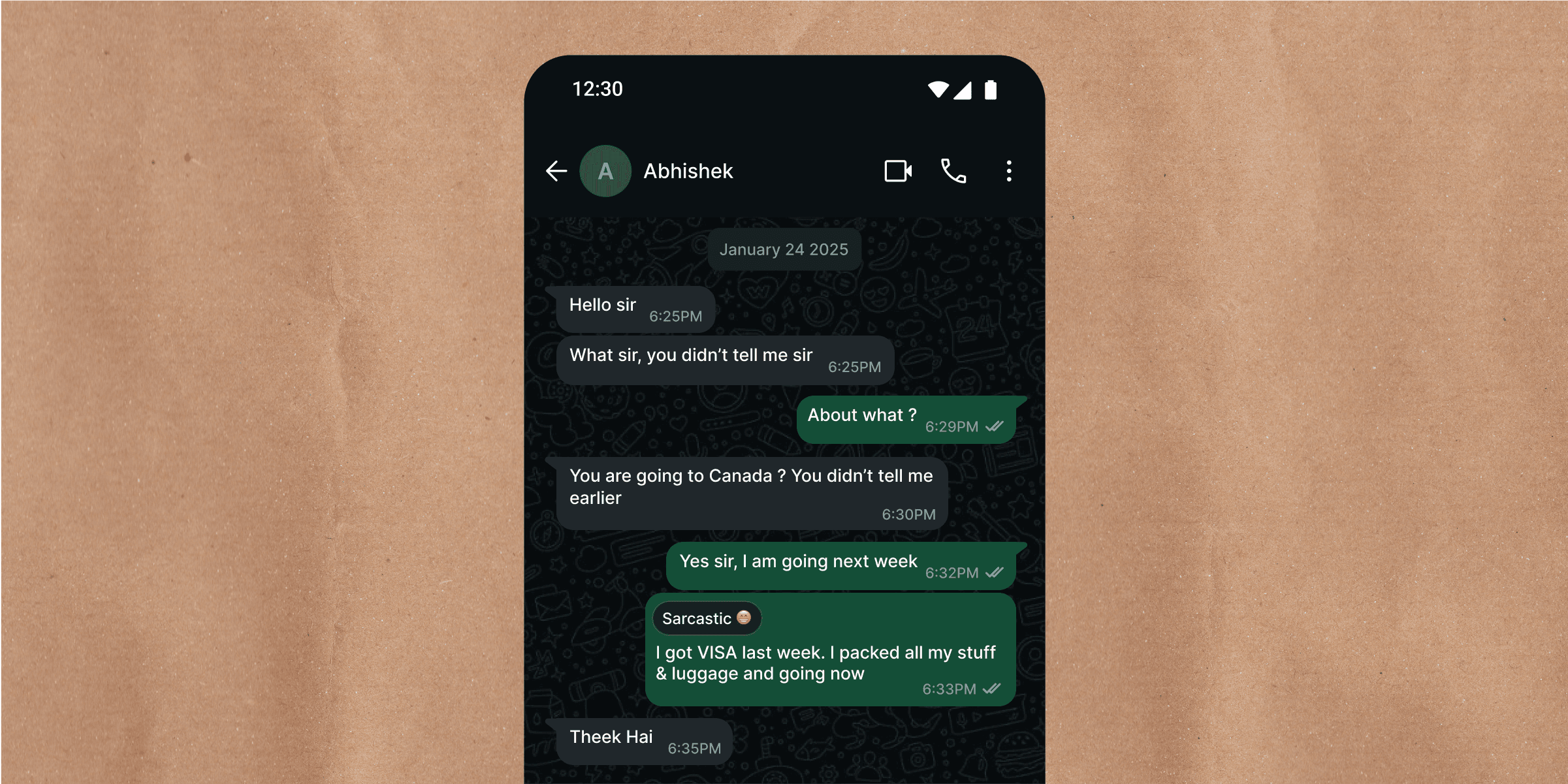 Texting can get tricky. What you meant as playful sarcasm might land as harsh. What if we could set the tone of your message — like “sarcastic”, “lighthearted”, or “serious” — so your words come with context. It's just helping people get what you really meant.