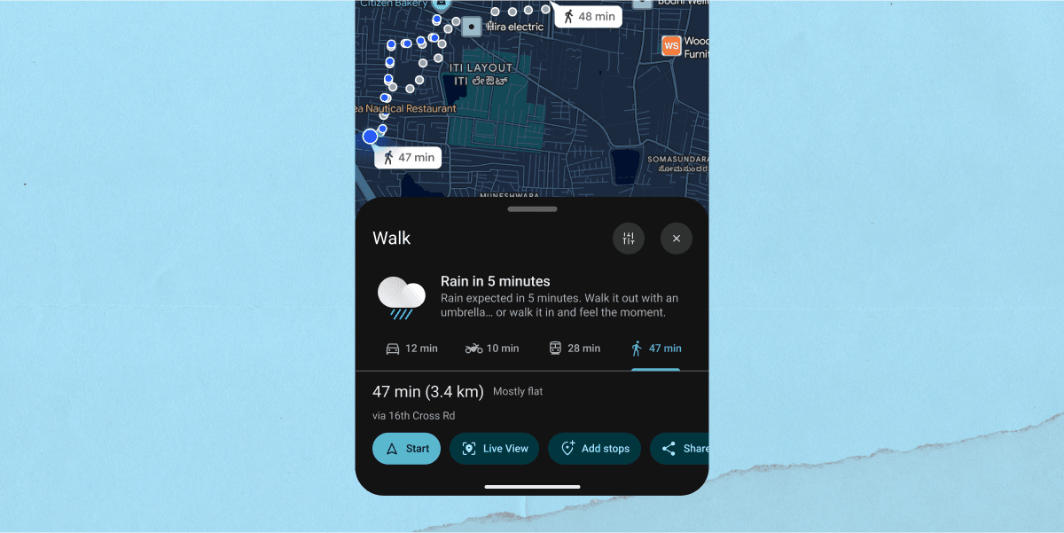 You’re heading out, and rain may be along for the ride. Consider an umbrella or raincoat. If not, enjoy the rhythm of raindrops as you walk.